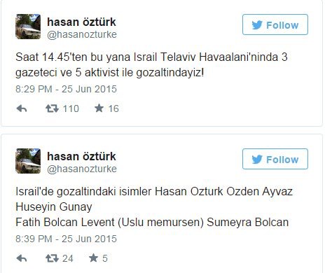 İşte Hasan Öztürk'ün gözaltına alınmalarıyla ilgili attığı tweet'ler.