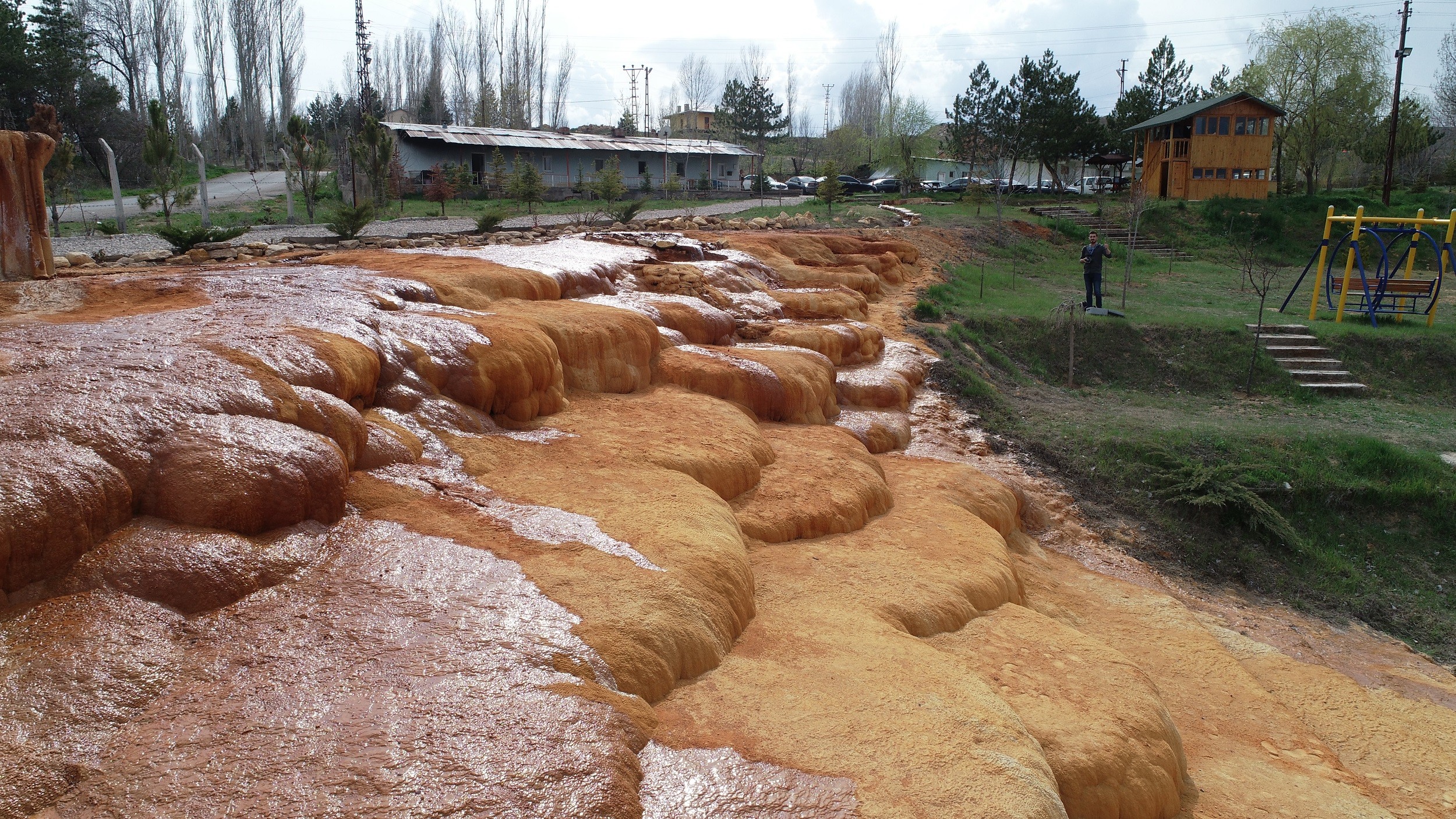 Sivas’ta sıcak çermik termal bölgesinde, akar termal suyun oluşturduğu altın rengindeki travertenler turizme kazandırılacak.